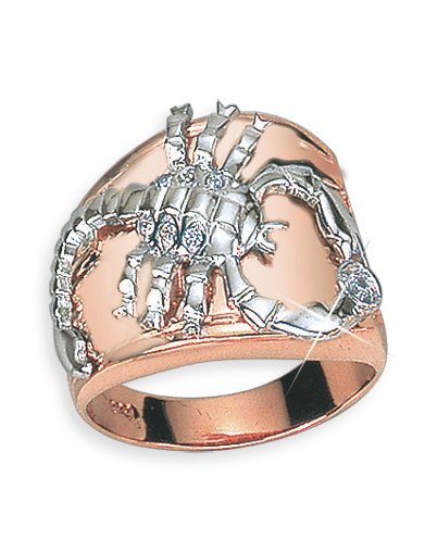 Spectacular solid men's ring in 585 standard red and white gold, decorated with phianites, weight ≈ 15.2 g