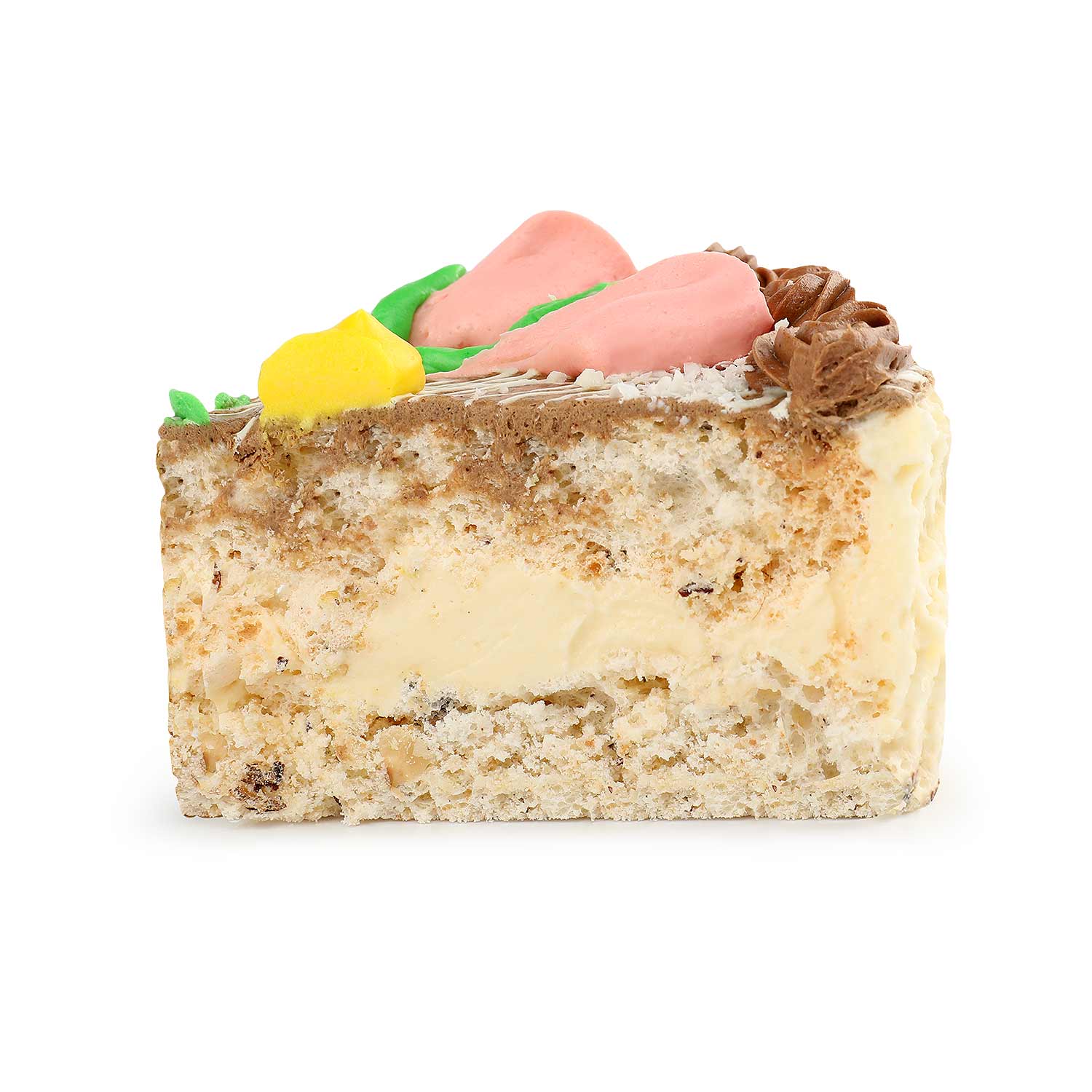 Ingredients: Granulated sugar, condensed whole milk with sugar (milk, sugar, lactose), butter (pasteurized cream), egg white, crushed hazelnut kernels, vegetable cream spread (vegetable fats, butter, skimmed milk powder), wheat flour, cocoa powder, table vinegar, preservative sorbic acid, food additive vanillin crystal flavouring, complex food additives: Carmine colorant (colorants - carmine, annatto extract, acidity regulator - potassium hydroxide, humectant - glycerol, water), chlorophyll colorant (colorant - copper complex of chlorophyllins), colorant - curcumin, humectant - propylene glycolIngredients.