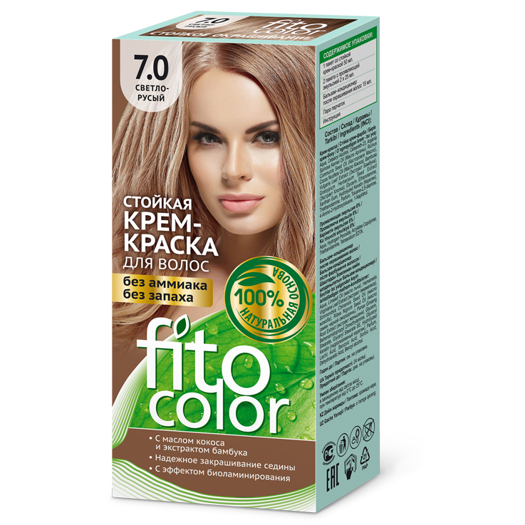 Fito cosmetics - "FitoColor" cream hair dye 7.0 light blond odorless ammonia-free