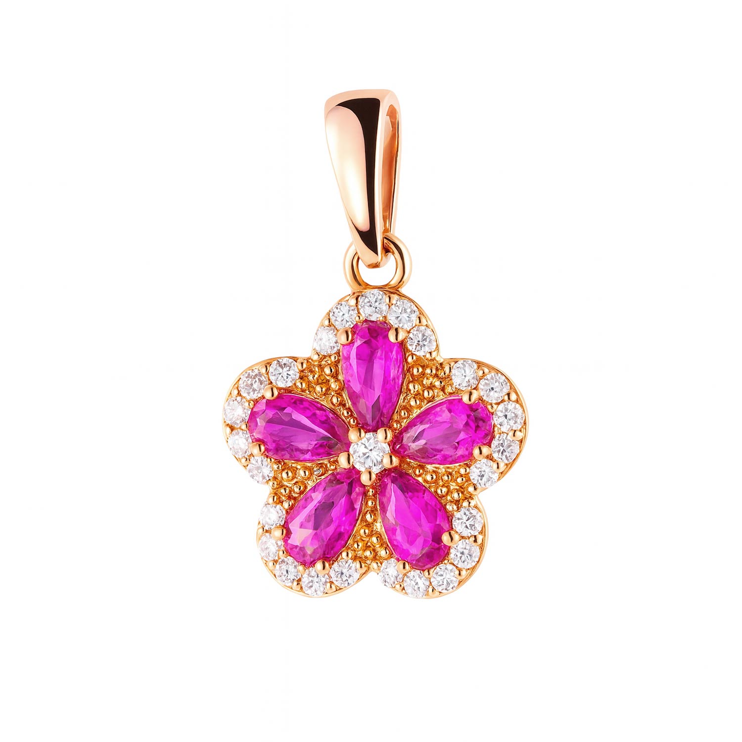 Anhänger Blume aus 585 Rotgold mit rosa und weißen Zirkonia