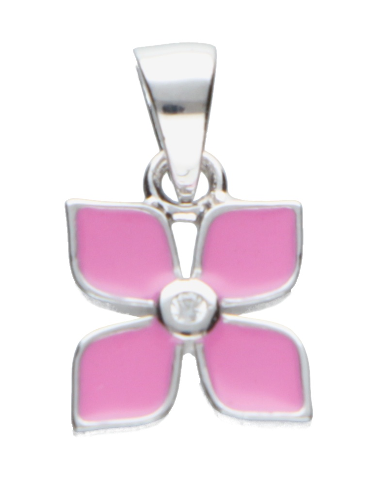 Flower pendant in 925 silver with zirconia and pink enamel