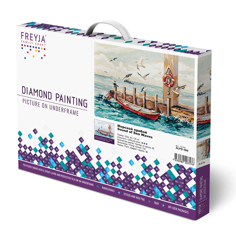 FREYA set: Diamond Painting "Sea surf" diamond embroidery technique, with colorful diamond mosaic stones on a stretcher frame (40 x 30 cm).