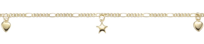 Figaro anklet in 585 yellow gold, diamond-cut, chain width 1.9 mm, spring ring clasp, length 25 cm