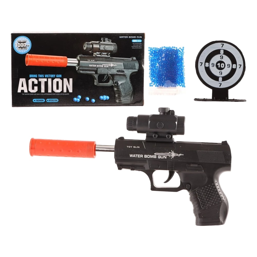The gel gun with 1000 water balloons is the perfect toy for exciting outdoor water balloon wars! This gel gun blaster pistol provides unlimited fun and exciting activities for both children and adults. With a length of 26 cm, it offers easy handling and lots of fun, while the safe, water-filled balls make playing even more entertaining. Ideal for hot summer days or as a highlight at parties and celebrations - unforgettable moments are guaranteed with this water balloon gun!Features: