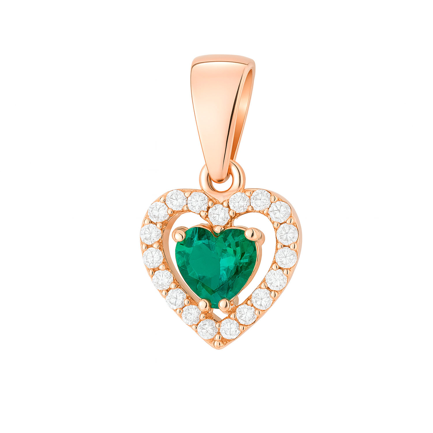 Heart pendant in 585 rose gold with green heart-shaped zirconia and small white zirconia
