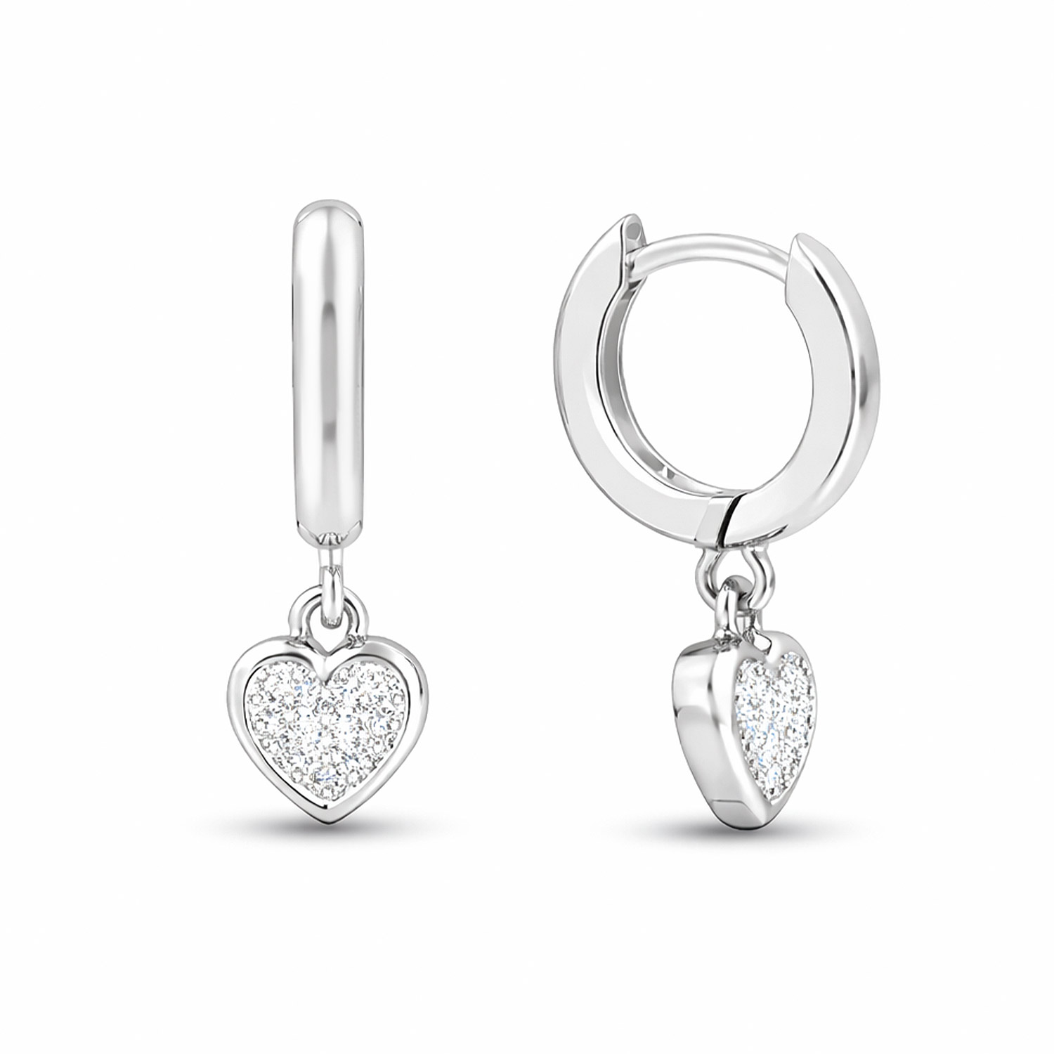 Enchanting ring earrings in sterling silver, with heart-cut zirconia inserts, hoops, height ≈ 18 mm.