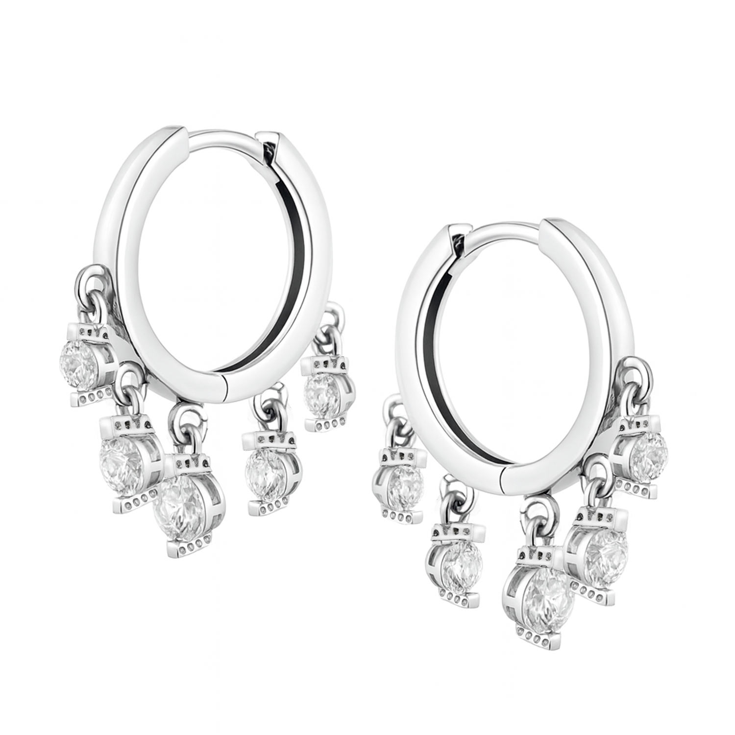 Immerse yourself in a world of light and elegance with these enchanting hoop earrings in 925 silver. Each earring has been masterfully designed to capture the grace of floating drops that shine in the purest zirconia sparkle. The hoops themselves nestle against your ear as delicate rings (2 cm in diameter), from which the sparkling "drops" hang in a fine silver setting and gently sway with every movement.With a total weight of 6.1 grams per pair, these hoop earrings perfectly combine lightness and presence. The zirconia setting reflects the light in all the colors of the rainbow and gives your look a magical radiance - whether for everyday wear or special occasions.