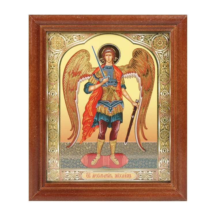 Icon "Archangel Michail" wooden frame, double embossing, under glass, 11 x 13 cm