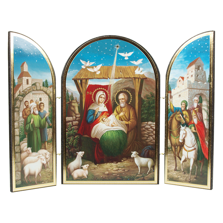 Icon clades 3-piece "Rozhdestvo Hristovo", made of wood, double embossing, 18,5x25 cm.