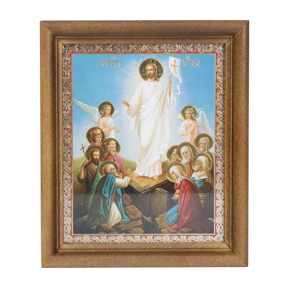 Icon "The Resurrection of Jesus Christ", wooden frame, double embossing, under glass, 11 x 13 cm