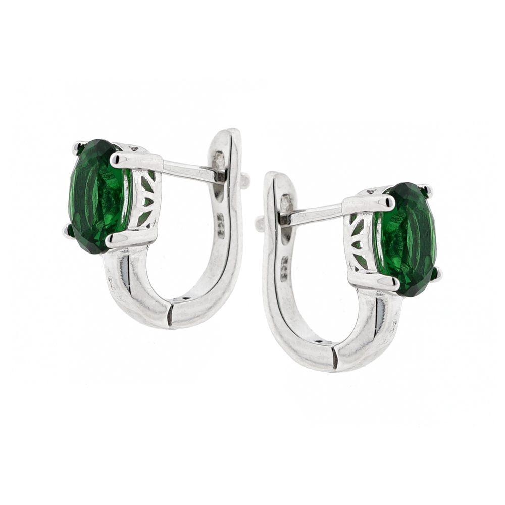 Jewelry set in 925 silver with green zirconia: earrings + pendant + ladies' ring (oval) size 18mm