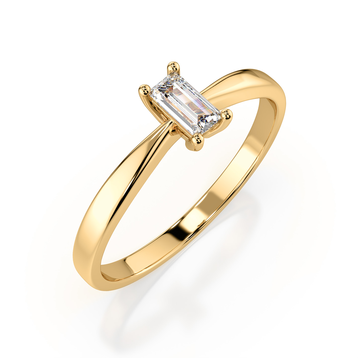 This ring combines understated restraint with luxurious shine. Crafted from fine Russian rose gold 585, it presents a single, rectangular-cut brilliant-cut diamond approx. 0.15 ct. GSI, which is perfectly accentuated in a simple four-prong setting. The clear design and modern elegance make this ring a versatile companion - ideal as an engagement ring, gift or stylish accessory.*** For ring sizes larger than 19.5 mm or smaller than 16 mm, please contact us by telephone.