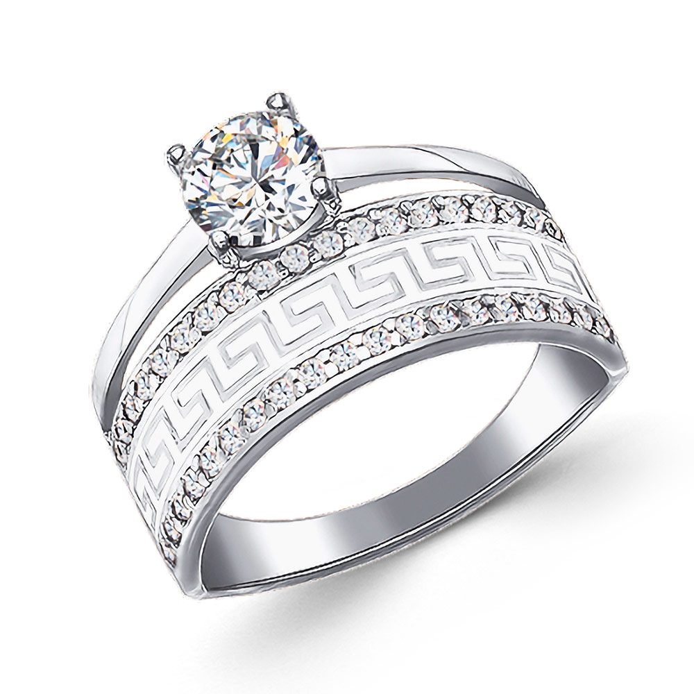 The ring with split bar looks like 2 rings on one finger. Very spectacular and elegant design, where the upper part is wide and the lower part is narrow so that the finger can be bent comfortably.The creative and comfortable jewelry will become a worthy decoration of your collection. The pattern of the ancient Greek ornament "meander", emphasized by white enamel, gives the ring an elegant look. The meander is a symbol of victory and unity, a symbol of infinity and eternal life. Such an enchanting piece of jewelry, as in the photo, can become not only a beautiful piece of jewelry, but also an interesting ring for every day.