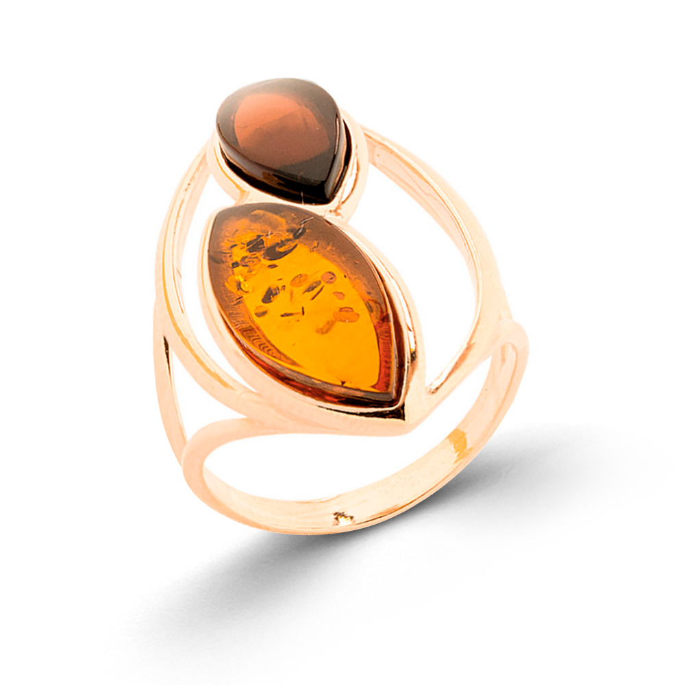 Ladies' ring in 925 silver with cognac and cherry amber stones, rose gold-plated, size 19.5 mm