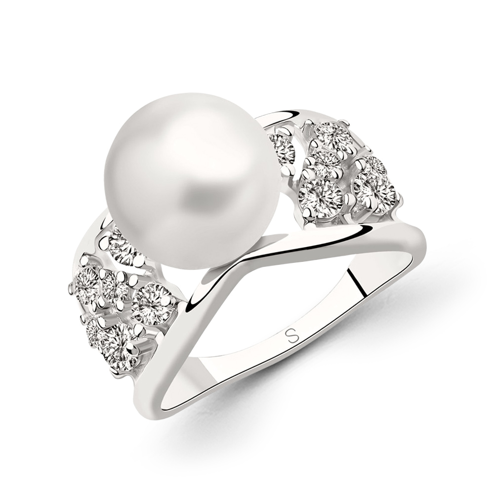 Attractive ladies' ring in 925 silver, with pearl and zirconia