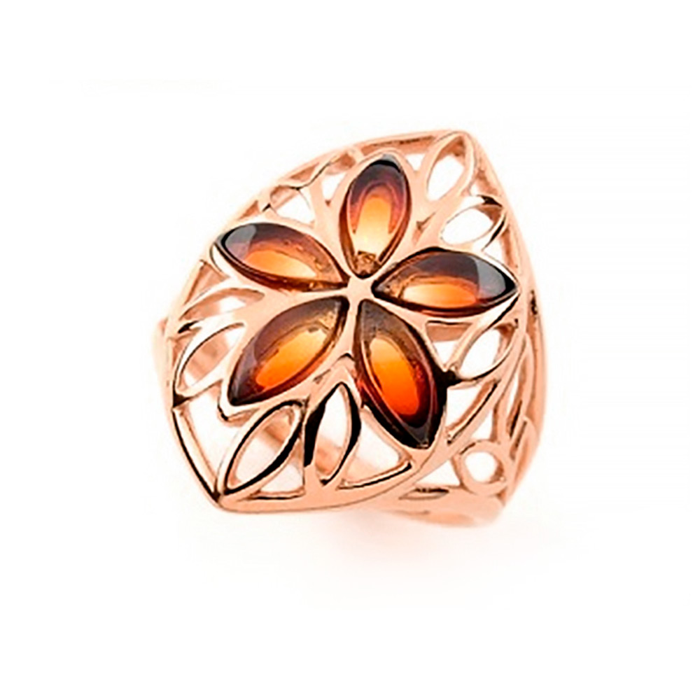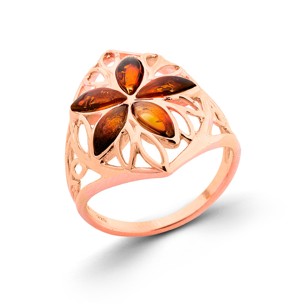 Ladies' ring in 925 silver with sunrise amber stones, rose gold-plated