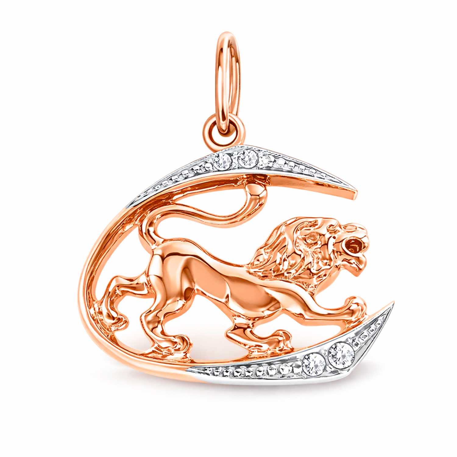 Leo zodiac sign pendant (23.07-23.08) in 585 rose gold, rhodium-plated, with 4 zirconia, height ≈ 24 mm
