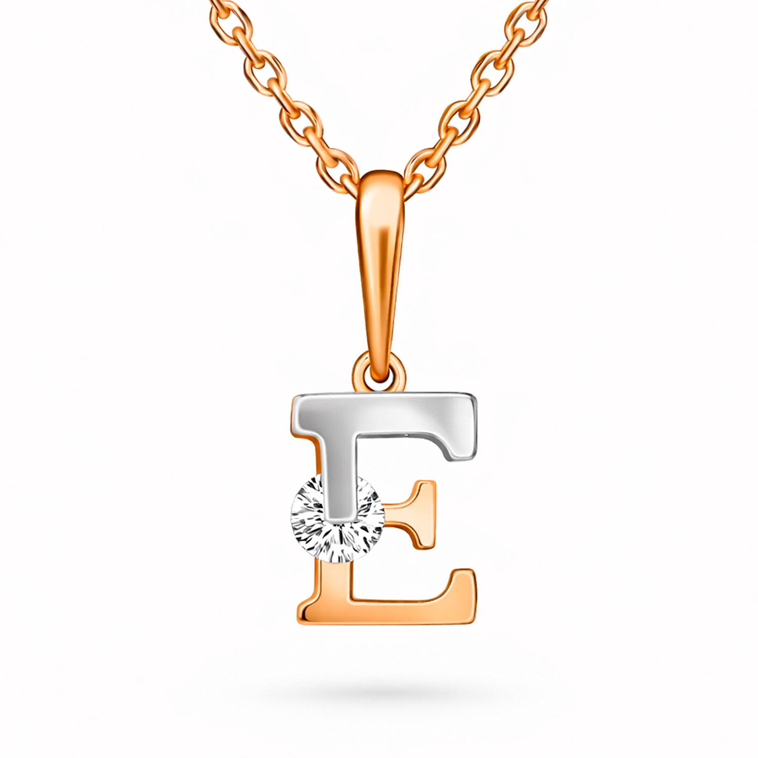 Letter pendant "E" in rose gold / white gold 585, with zirconia, height approx. 17 mm