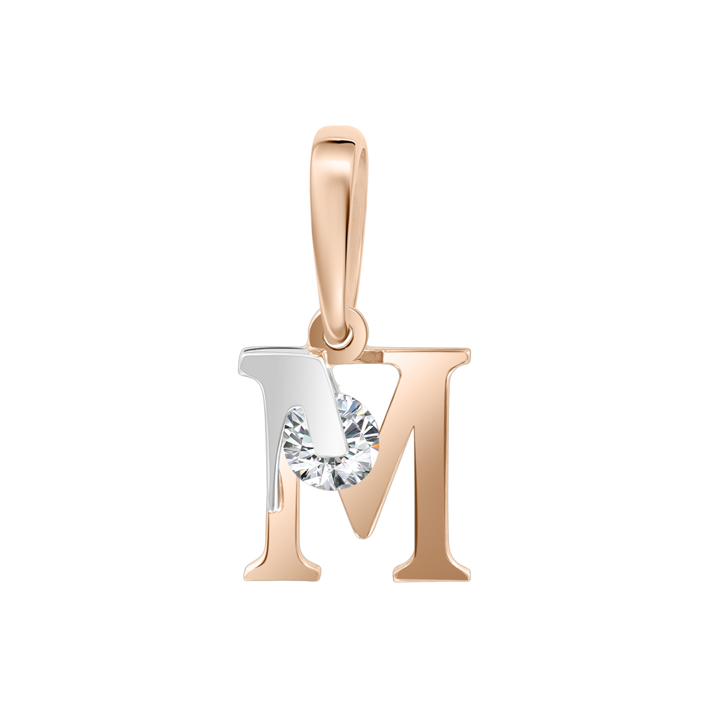 Letter pendant "M" in rose gold / white gold 585, with zirconia, height approx. 17 mm