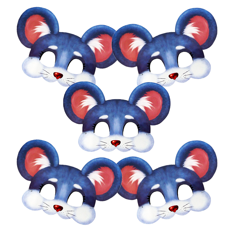 Masks - Set of 5 "Mouse" masks 20 x 29 cm, with elastic band, made of cardboard