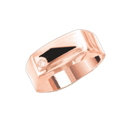 Men's ring in 585 rose gold with enamel and zirconia