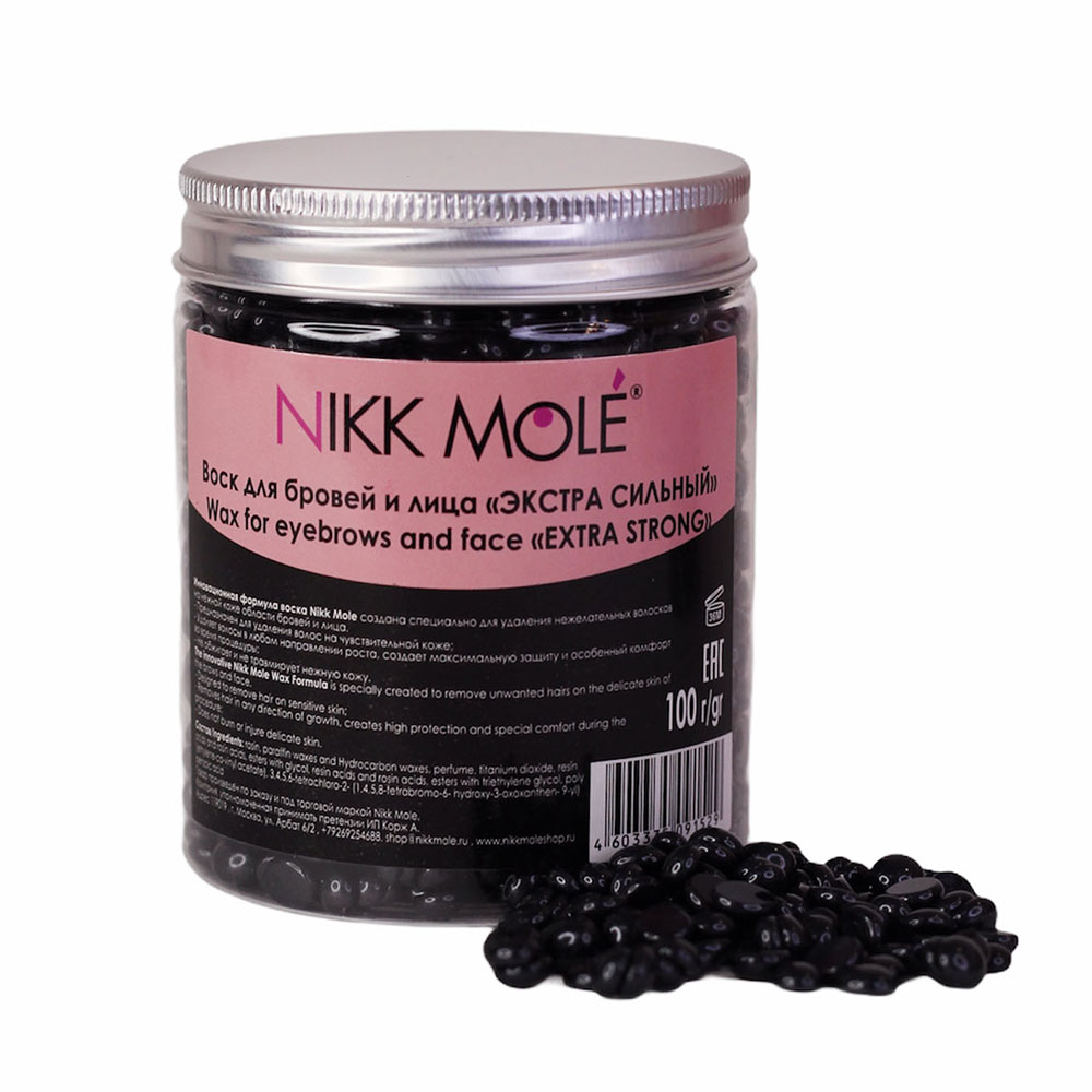 Nikk Mole wax for sensitive eyebrow and face skin "Extra strong" (granules) black, 100 g.