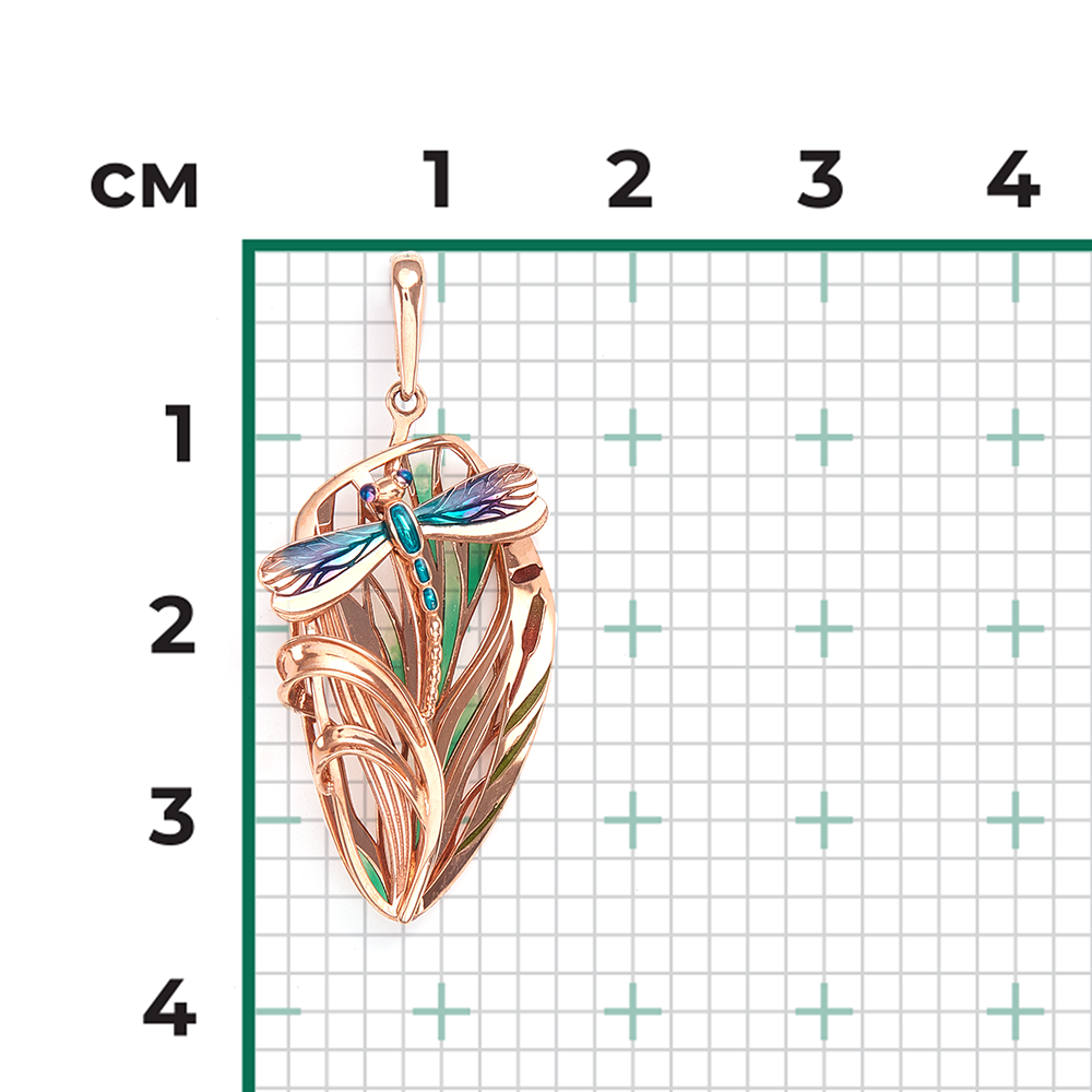 This intricately crafted pendant made of 14k rose gold (585) is a stunning tribute to nature. Featuring a graceful dragonfly resting among delicately enameled plant motifs, it captivates with its shimmering colors and elegant curves. Measuring approximately 36 mm in height, the pendant is a perfect accessory for nature lovers or a thoughtful, unique gift.The harmonious interplay of vibrant hues and refined goldwork adds a touch of elegance and lightness to any look.