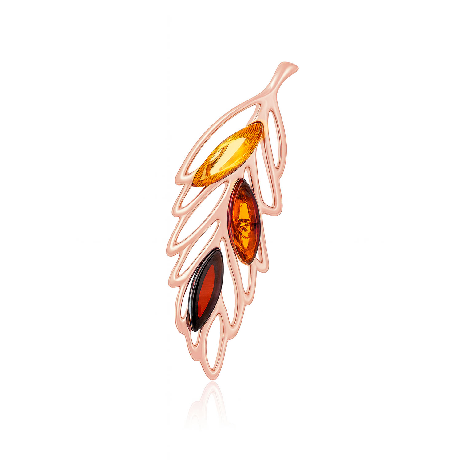Leaf shape pendant rose gold plated 925 silver with cherry, cognac and lemon amber.