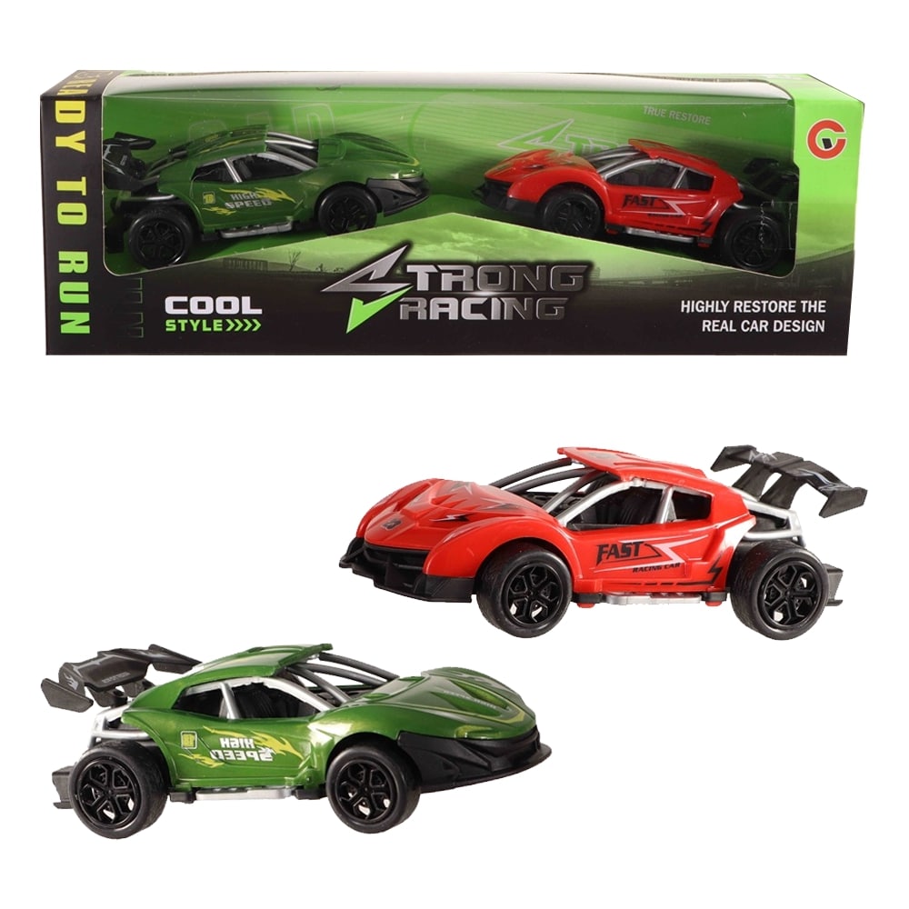 - Content: 2 racing cars (color: red and green)