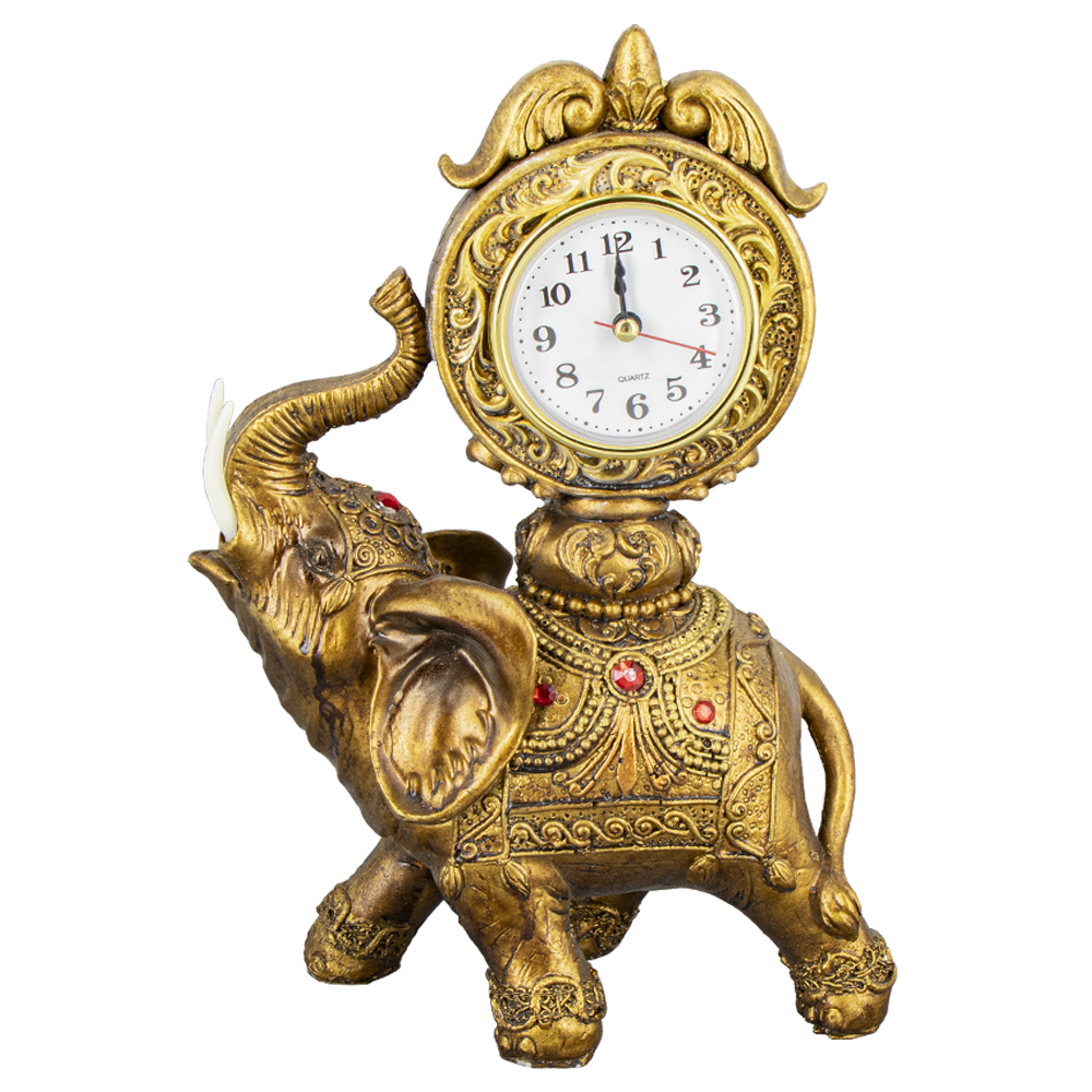 Bring timeless elegance and a touch of the exotic into your home with this exquisite elephant table clock!