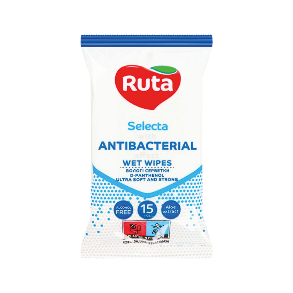 Ruta Selecta Antibacterial Wet Wipes, 15 pieces