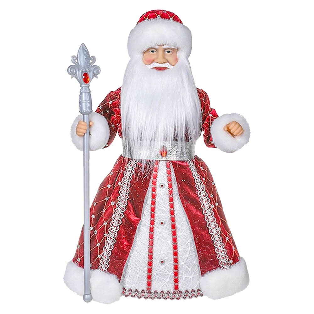 This magnificent Santa Claus figure in red and white with silver accents is the perfect decorative highlight for the Christmas season. With a stately size of 40 cm, this figure will attract everyone's attention. Santa Claus wears an elegant, detailed robe made of shiny red fabric, decorated with white faux fur and silver ornaments. In his hand, he holds an elaborate staff with a shiny red gemstone, which gives the figure additional elegance.Particularly practical: this figurine is not only decorative, but also has a hidden compartment inside in which you can store sweets, small gifts or other surprises. This makes it ideal for festive surprises or as a creative gift for family and friends.