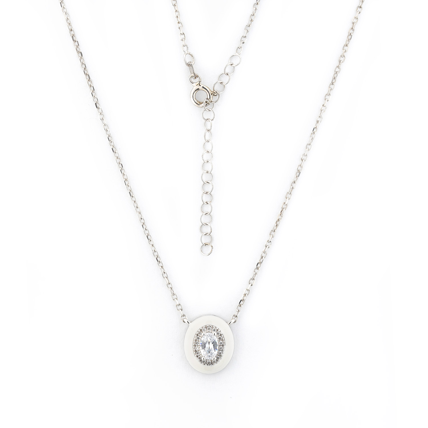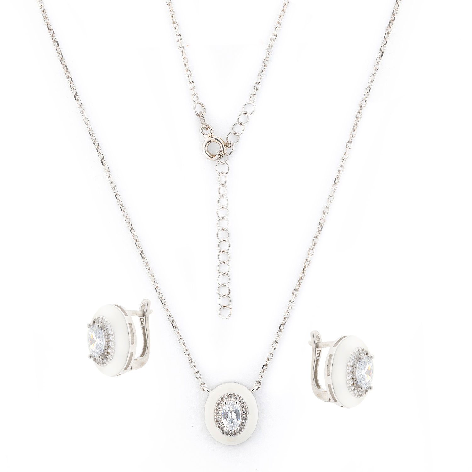 Set: Earrings + necklace in 925 silver, with zirconia, framed in white enamel