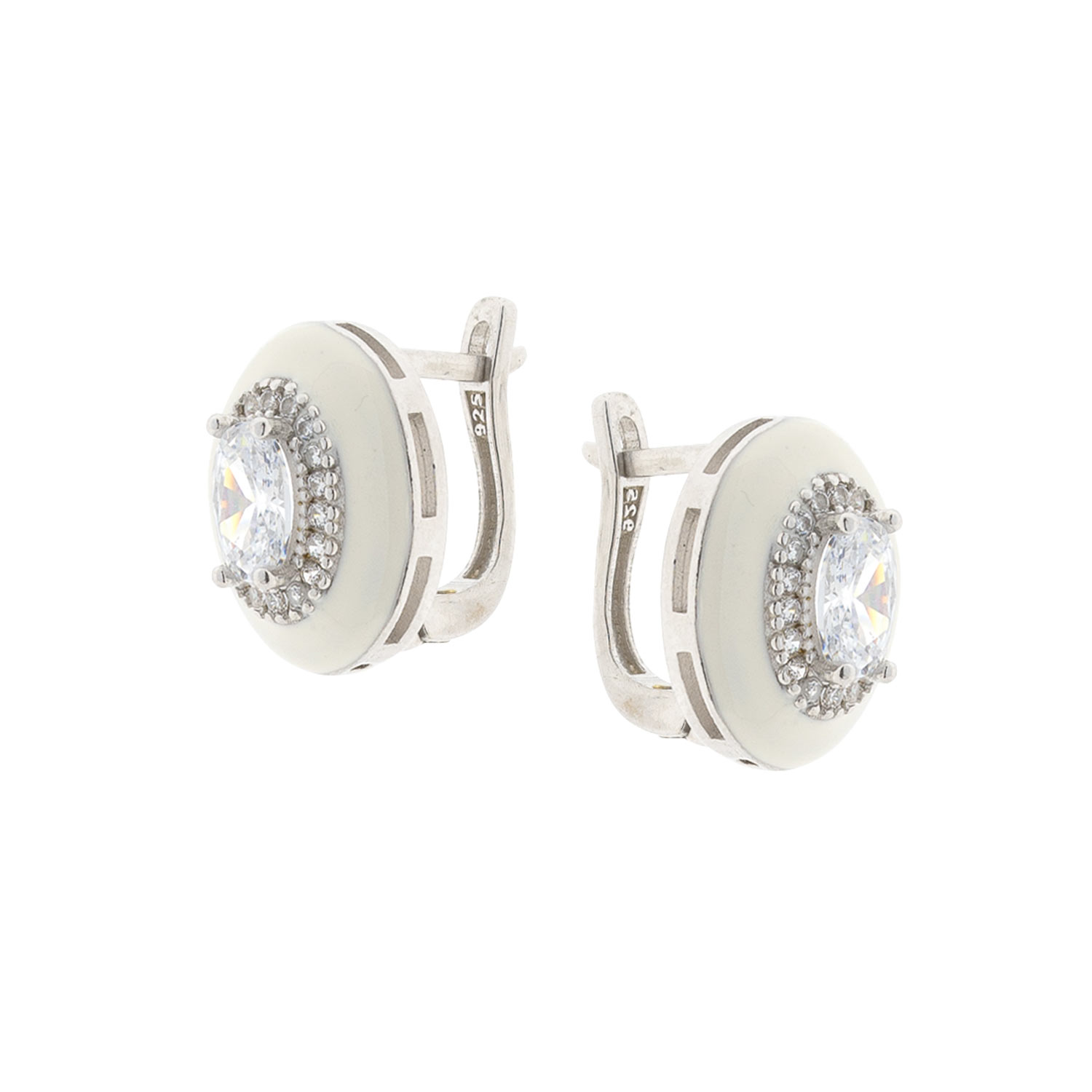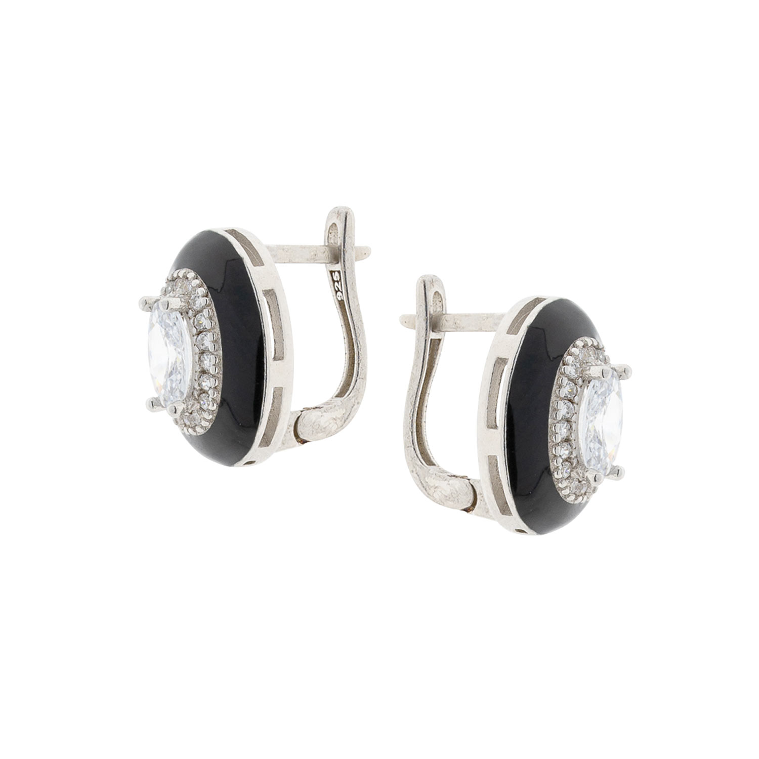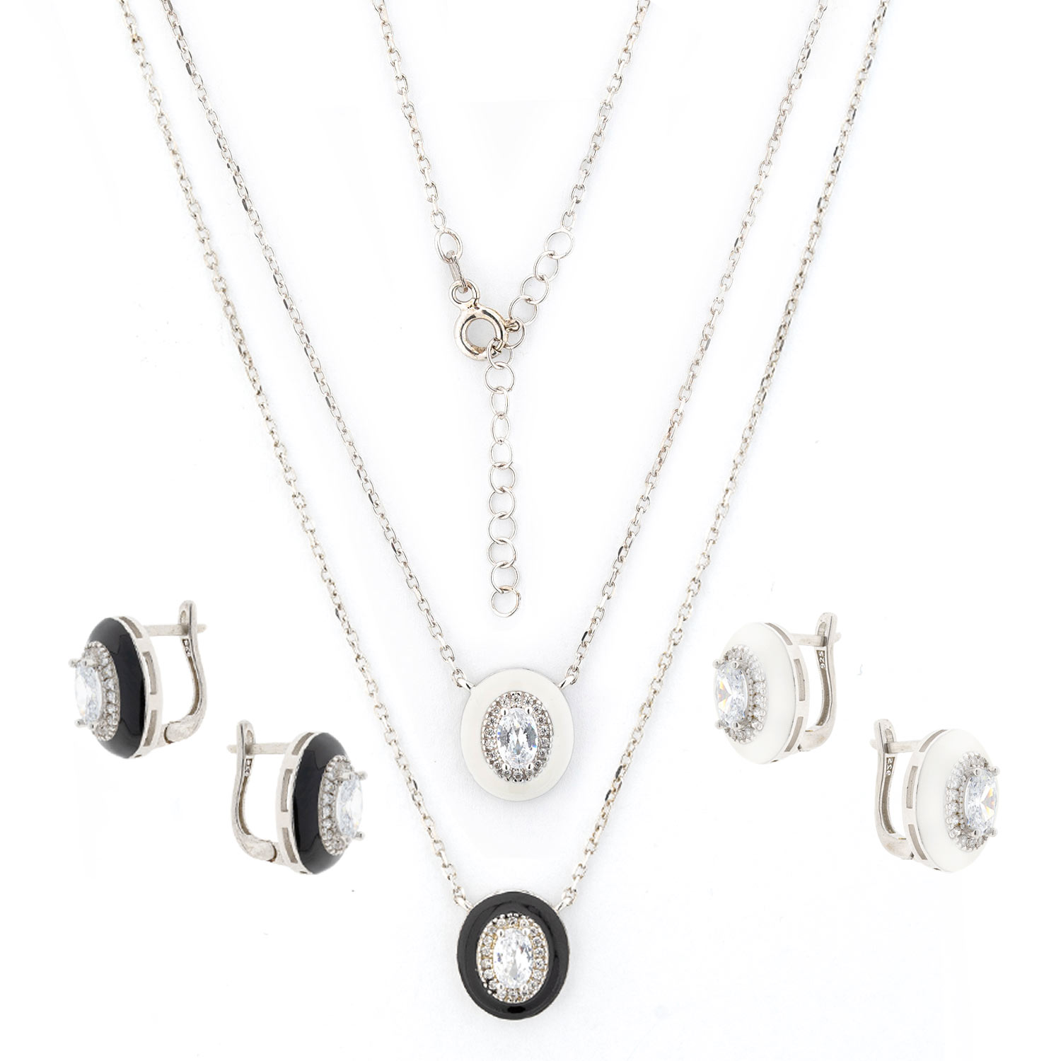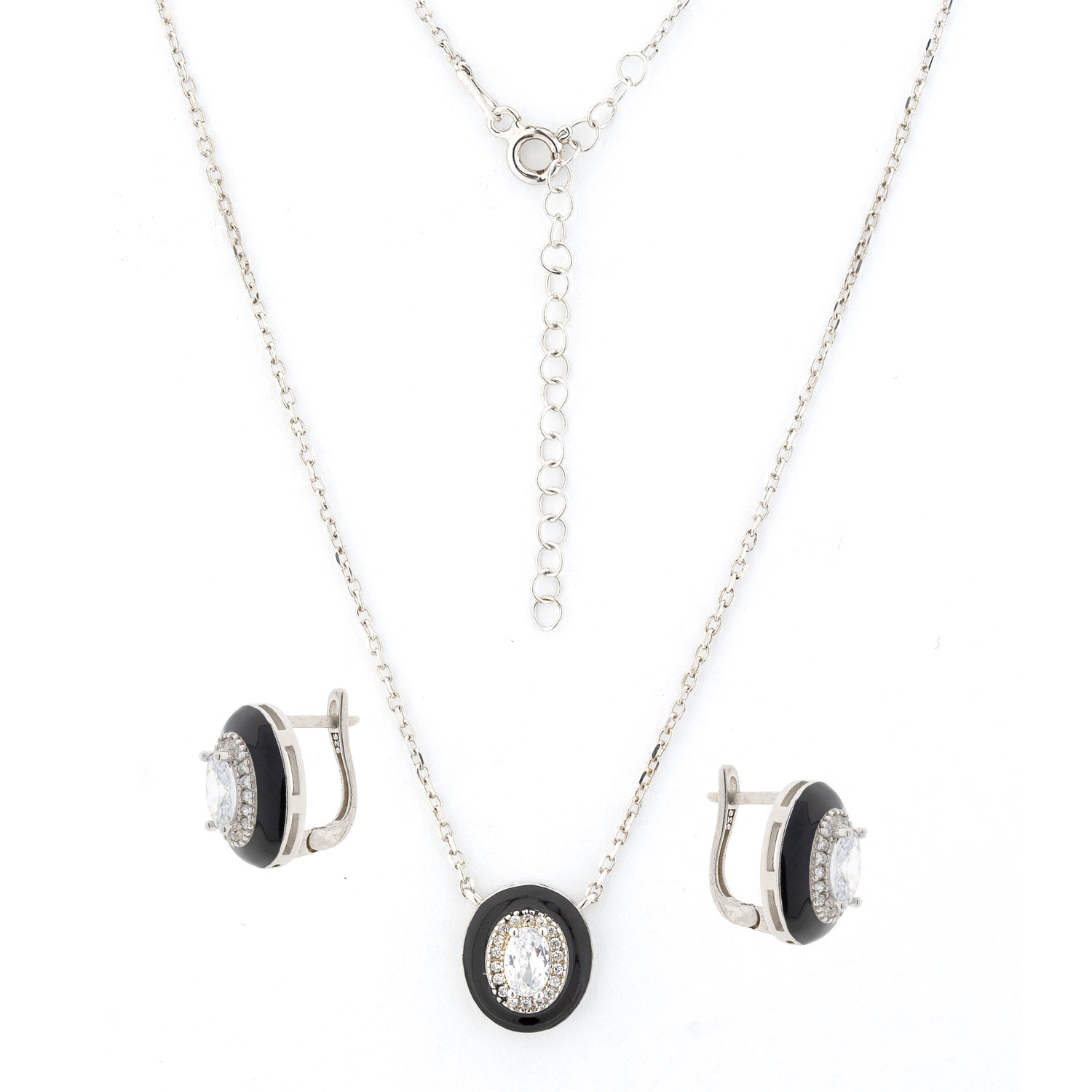 Set: earrings + necklace in 925 silver, with zirconia, framed in white or black enamel
