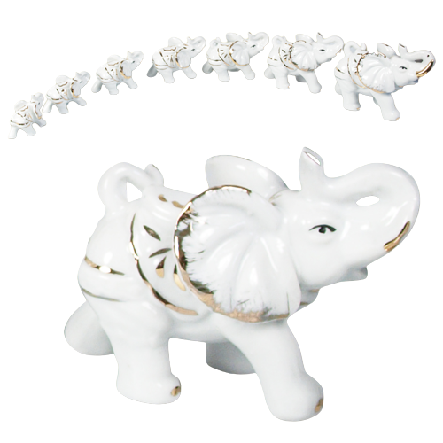Set of figures "7 elephants" made of porcelain, white-gold, 4 cm to 9 cm.
