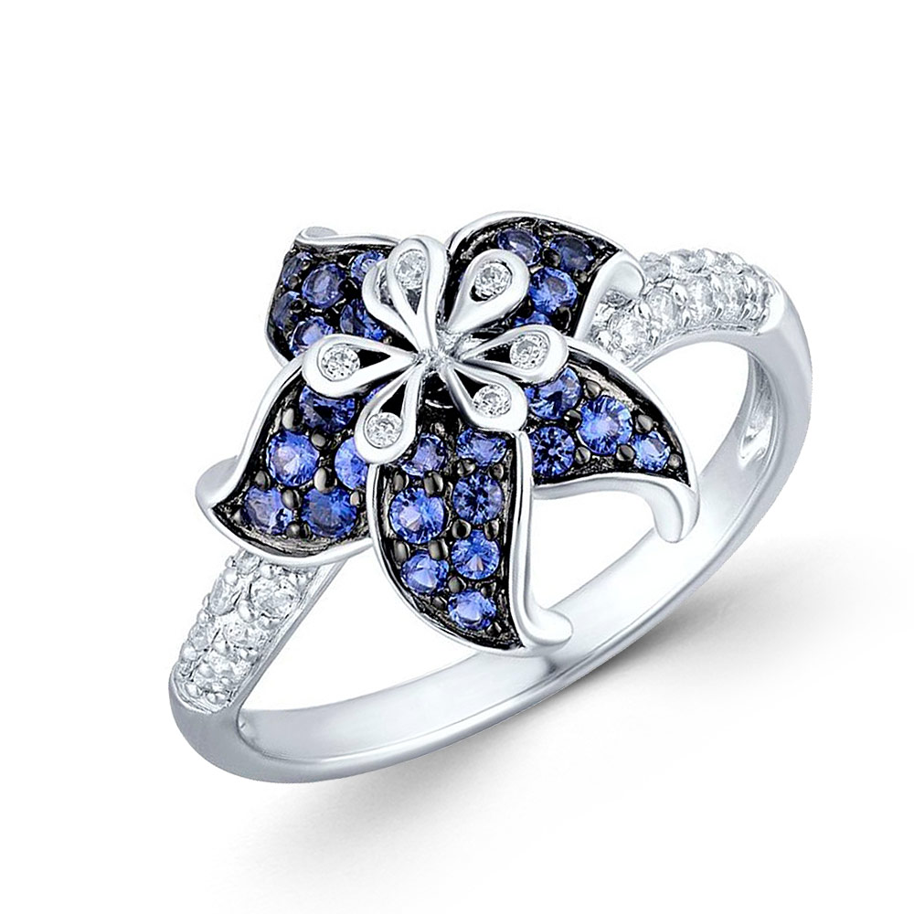 Sokolov ladies' ring flower in 925 Sterling with blue and white zirconia, size 18 mm (57)