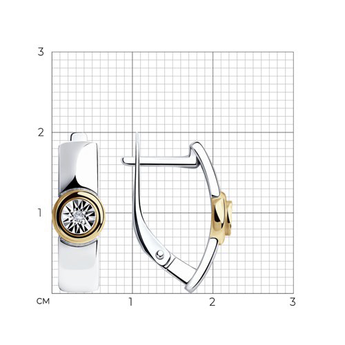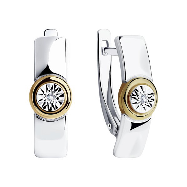 Earrings in 925 silver gold plated with diamonds by SOKOLOV