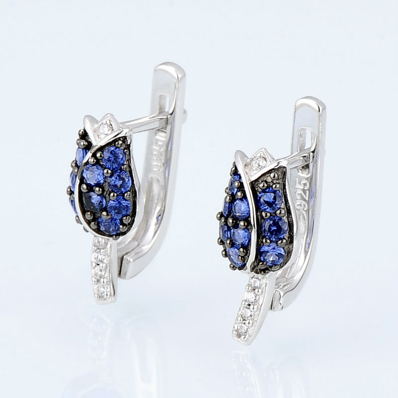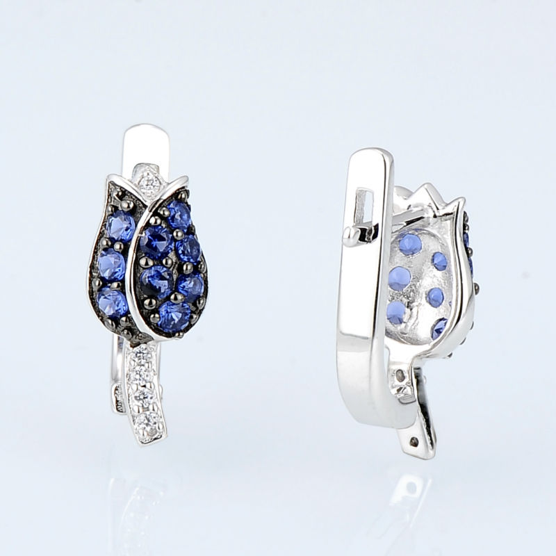 Sokolov flower earrings in 925 silver with blue and colorless zirconia