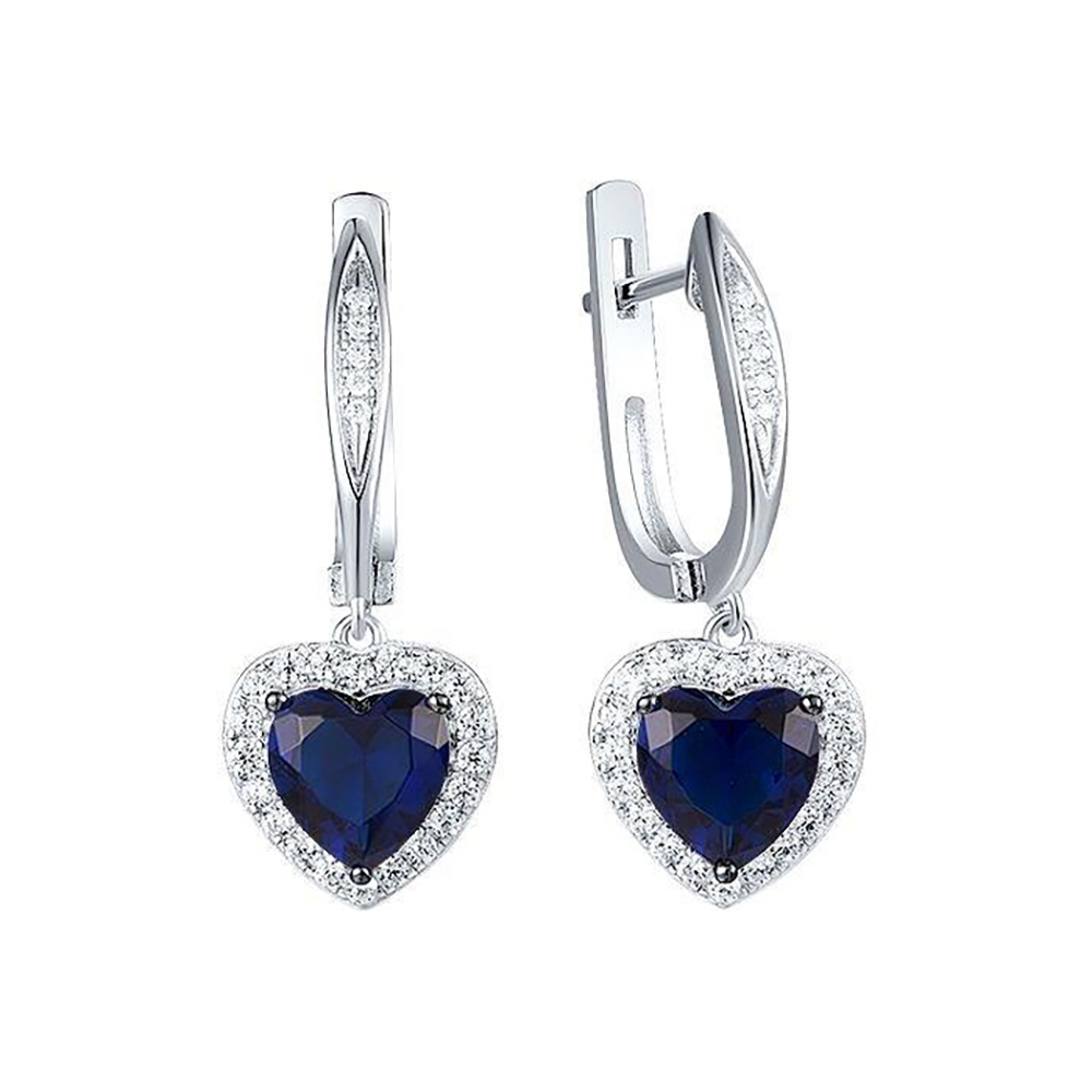 Sokolov heart shape earrings in 925 with blue nano topaz and colorless cubic zirconia.