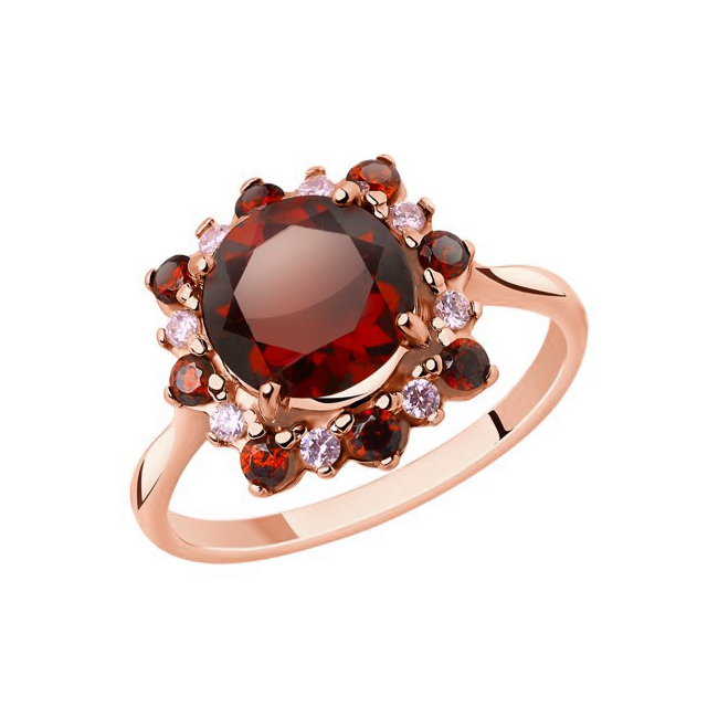 Sokolov ladies ring gold plated 925 silver with a garnet and zirconia
