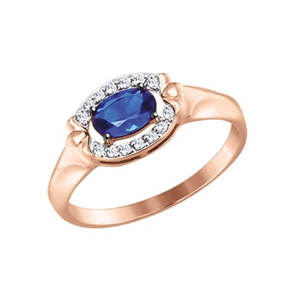 Sokolov ladies' ring in 585 red gold with a sapphire and zirconia