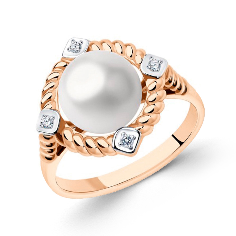Sokolov ladies ring in 585 rose gold with a pearl and zirconia Gr-19mm