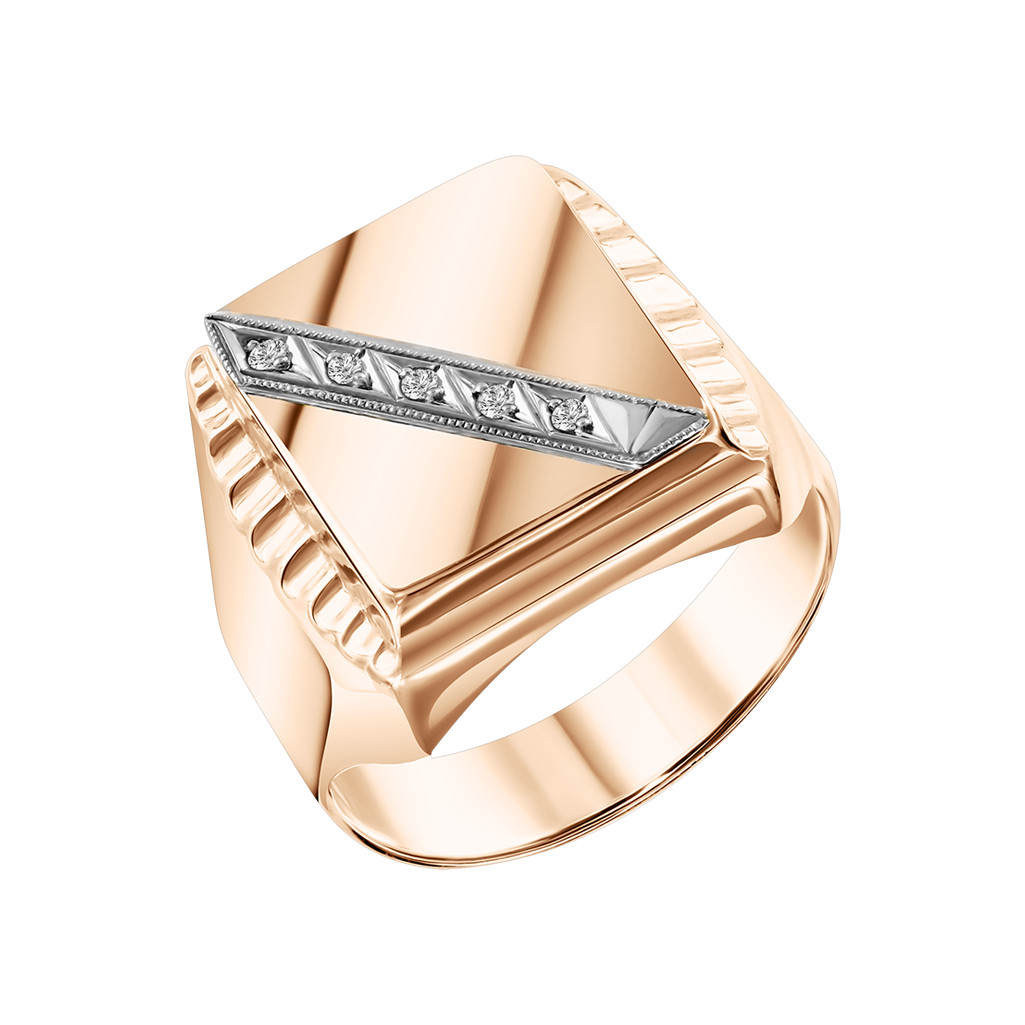 Excellent men's ring in 585 rose gold with zirconia, weight ≈ 7.8 g