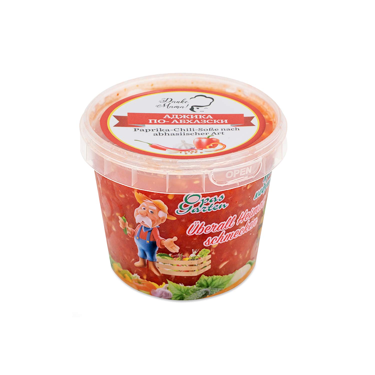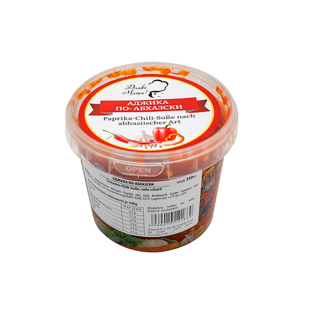 Spasibo Mama Adgika Abkhazian style, extra hot is a traditional, spicy-hot specialty from Caucasian cuisine. It is made from a carefully balanced blend of tomatoes, paprika, chili, horseradish, garlic and coriander. This sauce impresses with its intense heat and deep aroma - perfect for lovers of spicy dishes.Thanks to its fiery spiciness, this sauce is ideal as a dip, marinade or spicy side dish for meat, fish, vegetables and many other dishes.