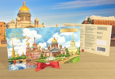 St. Petersburg milk chocolate (watercolor) combines art and pleasure in one bar. With its creamy melting texture and delicate vanilla note, it is a highlight for special moments - whether as a sweet break or a charming gift. Try the salt-free premium chocolate and let yourself be seduced by the taste of Russian elegance!"Properties: