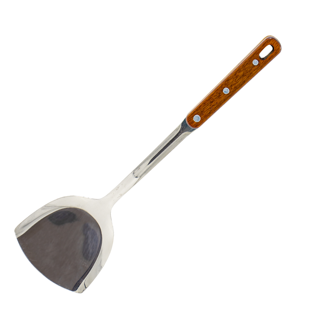 Stainless steel kitchen spatula with wooden handle, 35 cm.