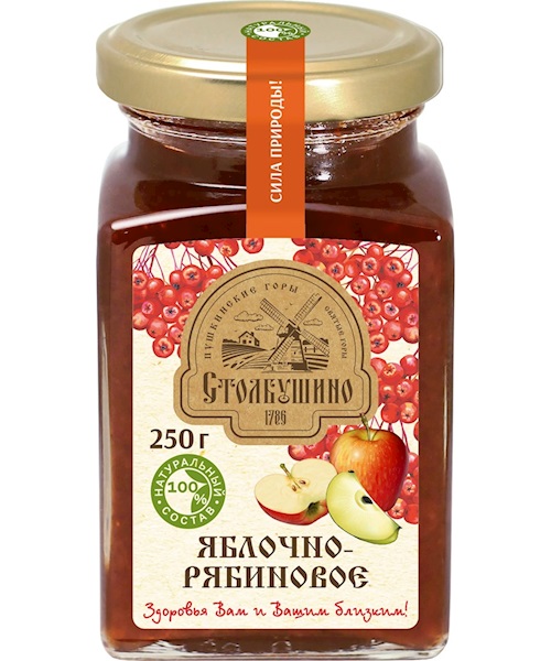 A finely balanced spread from the traditional Stolbushino manufactory. Juicy apples and aromatic red rowanberries combine to create an intense, full-bodied taste with a pleasantly tart note. The fruit is processed particularly gently - according to a classic recipe that preserves the natural aroma, freshness and valuable properties. No colorants or preservatives. An honest, natural treat that is reminiscent of real, home-made preserves.Special properties: