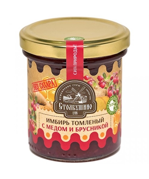 Stolbushino ginger with honey and cranberry, without sugar, 160g