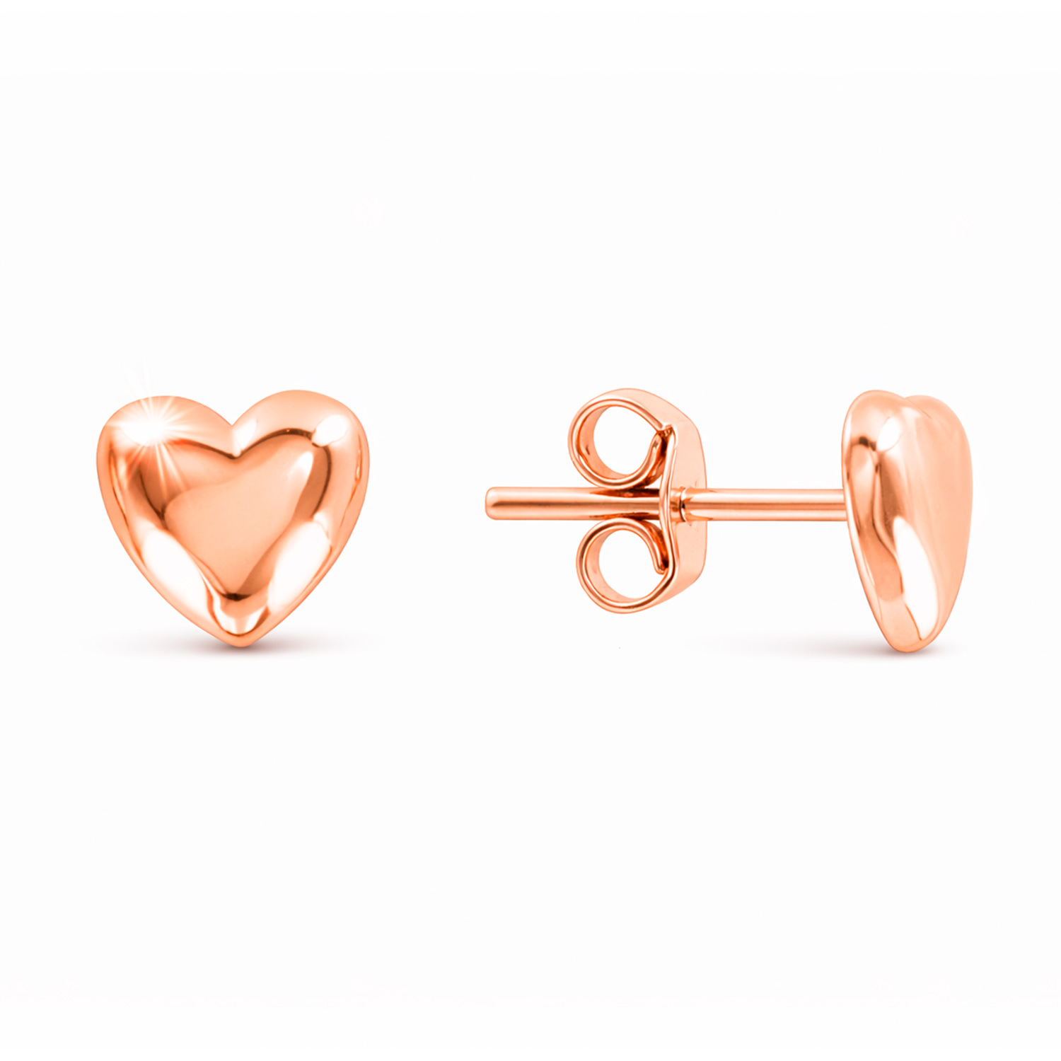 Pretty stud earrings in 585 standard rose gold, diameter ≈ 8 mm, made in the shape of a "heart".