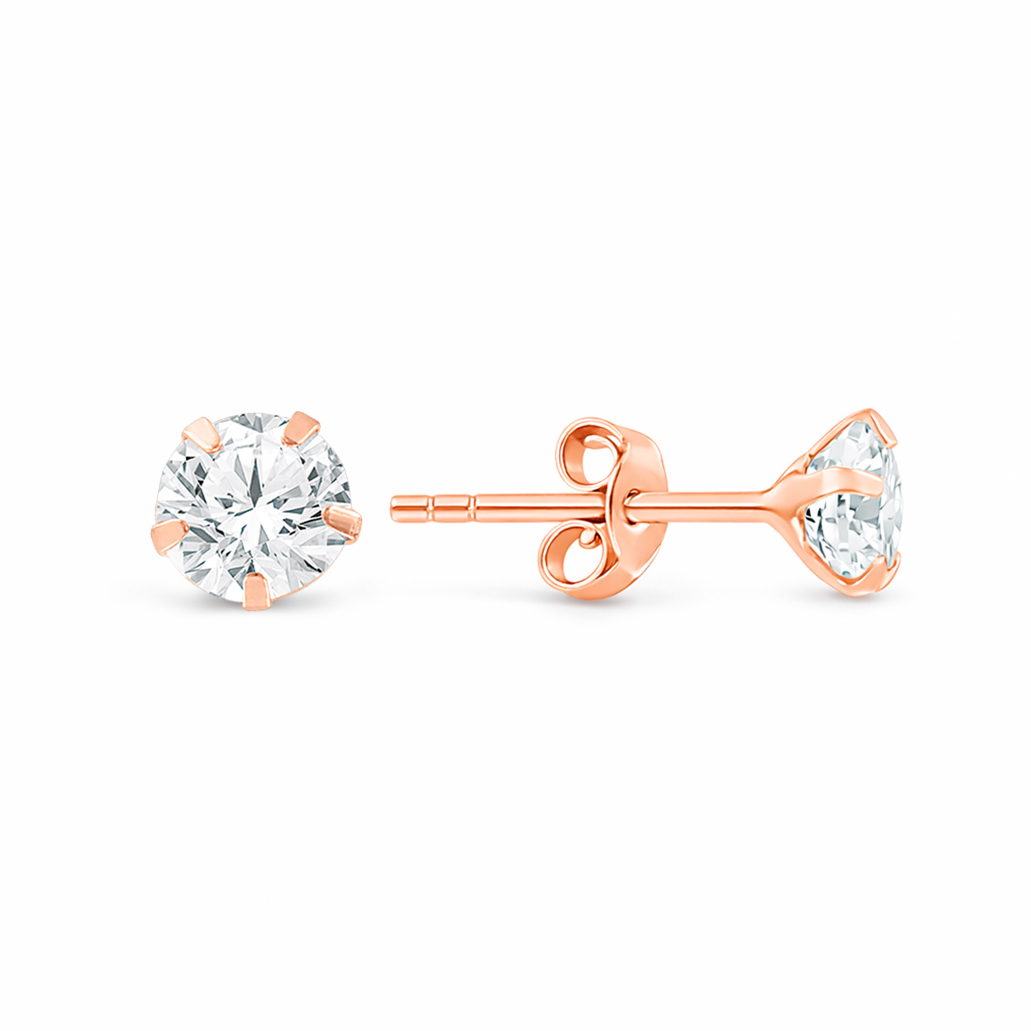 Pretty stud earrings in 585 rose gold, with zirconia, diameter ≈ 3.5 mm.